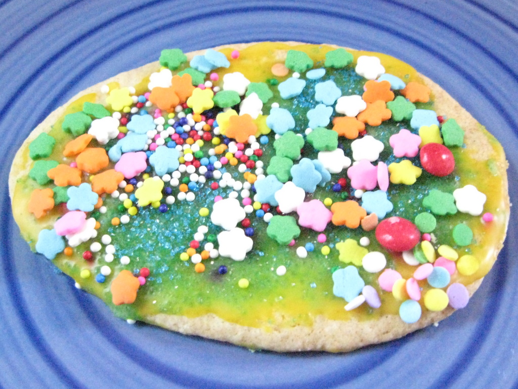 7. Frost, sprinkle with colored sugar or whatever you like.