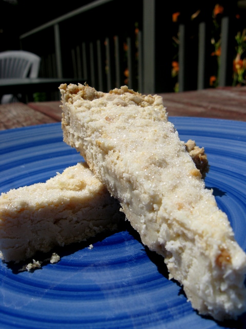 If desired, you could skip the sugar and spread some chopped chocolate on the warm shortbread, allow it to melt, and spread it around. Be sure to still cut the shortbread while still warm, otherwise it will crumble when cutting.