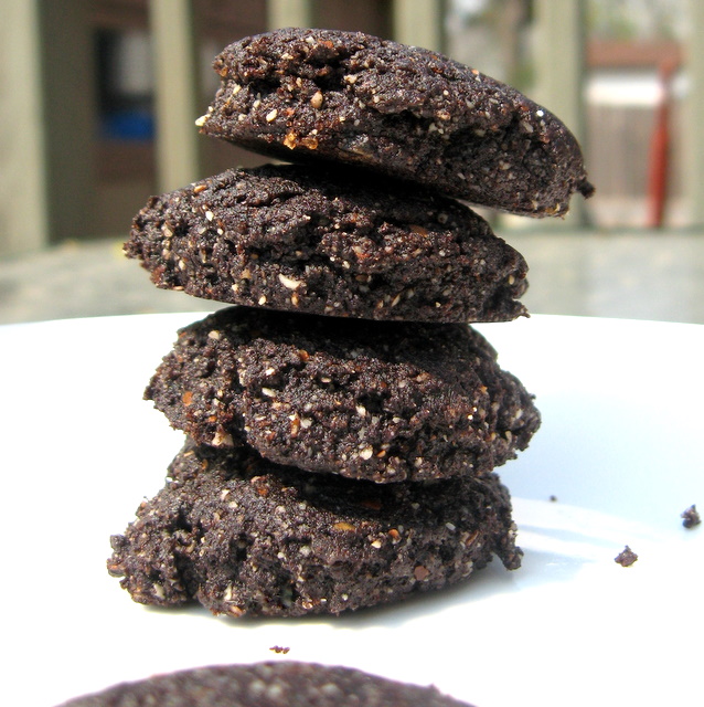 Soak the agar in the water for 15 minutes, until softened. Place agar, dates and coconut oil in a food processor and blend until creamy. Add the rest of the ingredients and blend well. You should have a fudgy, spreadable brownie-esque batter. Spread thinly on teflex sheet or fruit leather tray. Dehydrate at 115° for 2 hours. Crumble cake batter. (I used my fingers. And then I licked them. Yum.) Continue drying until cake batter is more crumbly than sticky. It took about 5 hours for me. It will vary based on the thickness of your batter and the powerfulness of your dehydrator. Cool thoroughly.